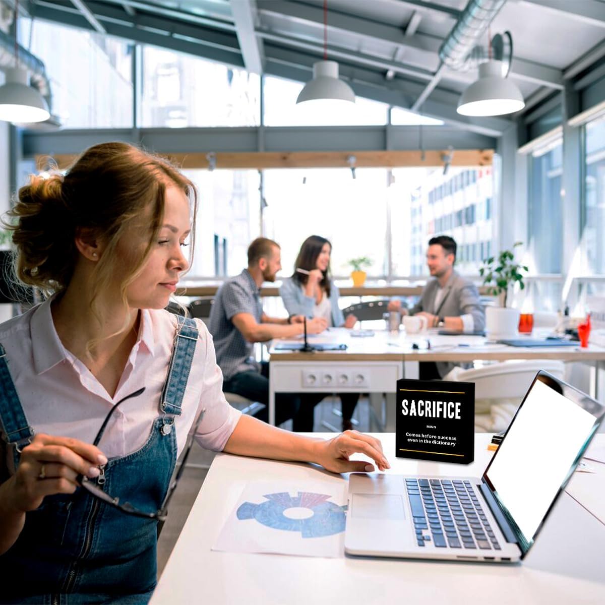 Sacrifice Noun Entrepreneur Black Wooden Box Sign, Inspirational Office Decor, Decorative Table Shelf Desk Rustic Cubicle Farmhouse Home Workplace Decor Office Decorations Desk Accessories