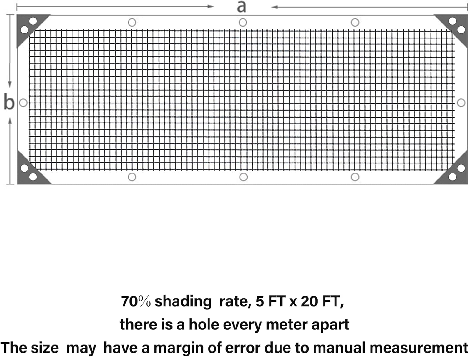 winemana Black Shade Cloth 70%, 5x20 FT Mesh Tarp - Garden Shade for Greenhouse, Patio, Vegetables, Plants Cover and Chicken Coops, Sun Shade Net for Outdoor Protection with Reinforced Grommets