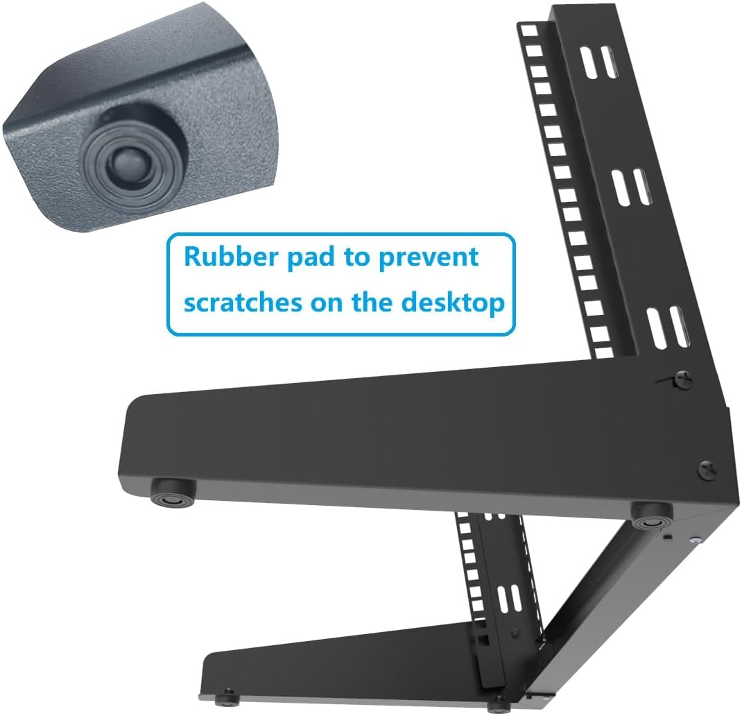 - Sturdy Construction: this 8U Tabletop Rack is made of high quality cold rolled steel with powder coated finishing. The rivets at the hinges are made of steel. The desktop rack is more sturdy once you secure your first unit. Max loading weight capacity: 50 pounds.