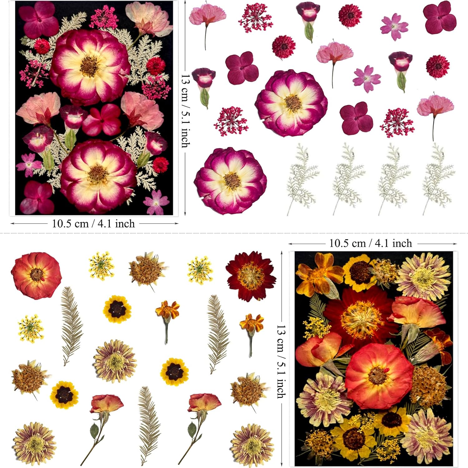 - Beautiful Natural Dried Flowers: Our pressed dried flowers made from real natural flowers and leaves, We use special techniques to keep the dried flowers bright and long-lasting in color. Please don't place the flowers in direct sunlight, and use up as soon as possible after opening, otherwise they will be oxidized and discolored by moisture absorption.