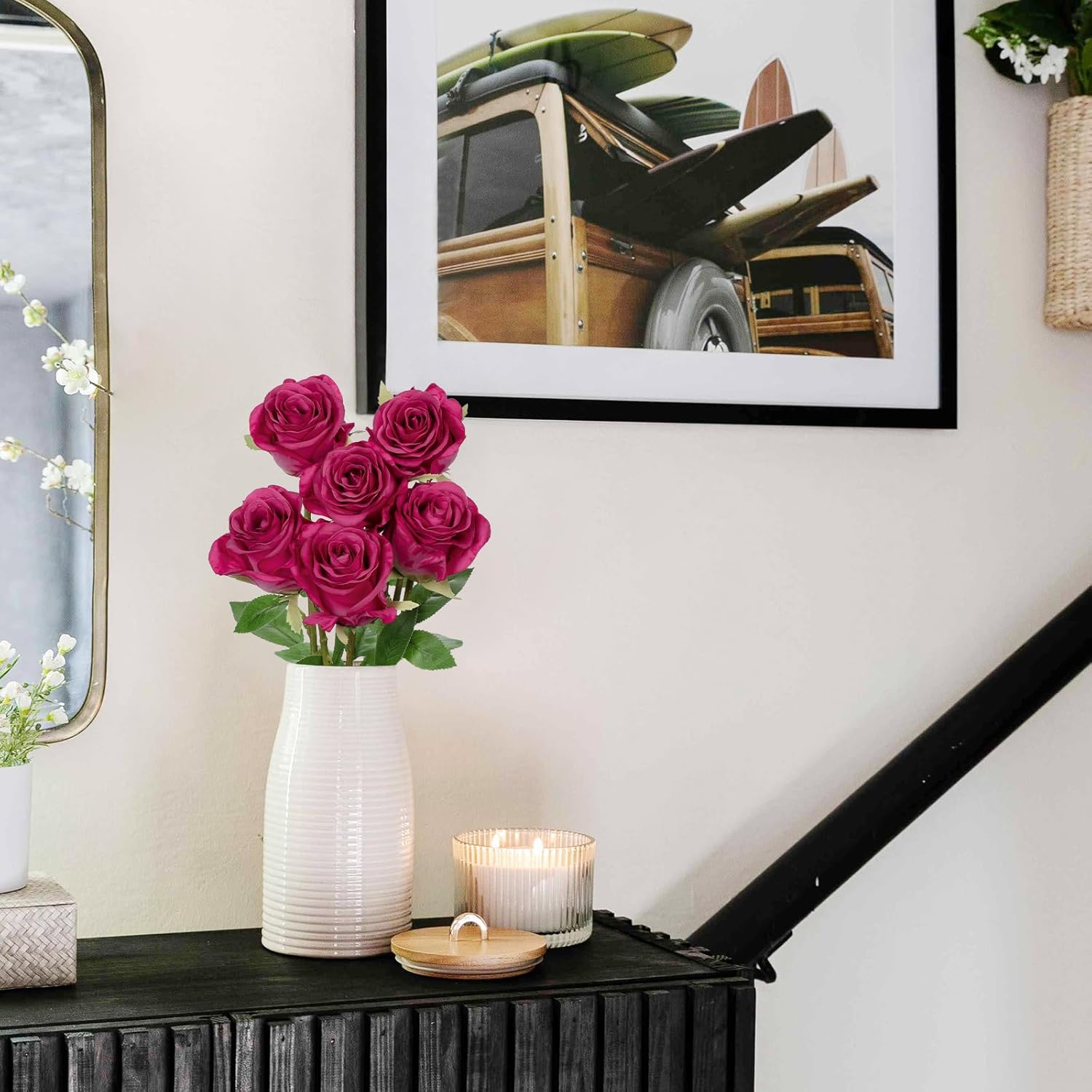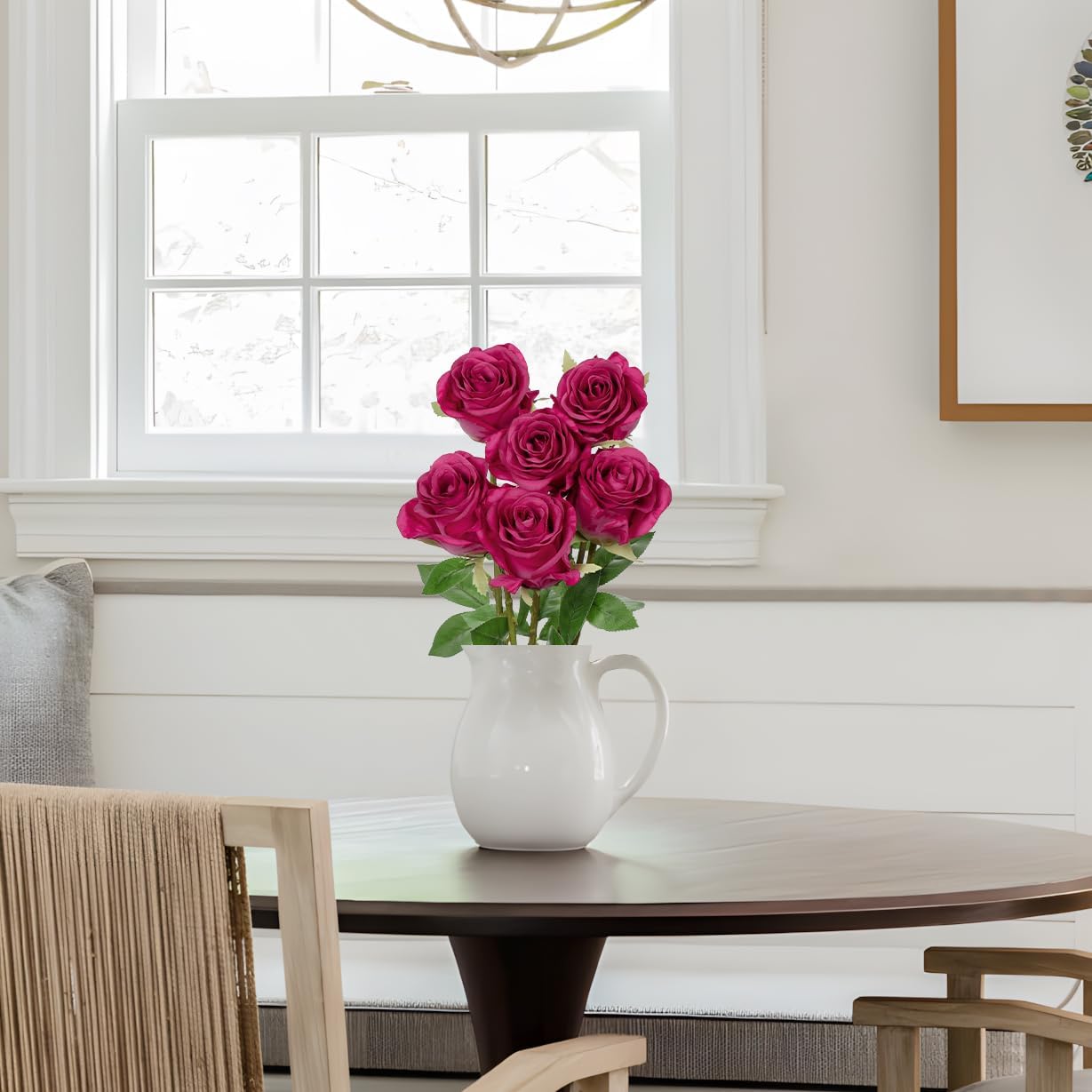 - 6 Full Blooms per Set: This set includes 6 individually crafted faux roses, offering a full and balanced arrangement for your space. The vibrant color and rich texture make them ideal artificial roses flowers for centerpieces, floral walls, or seasonal home updates.
