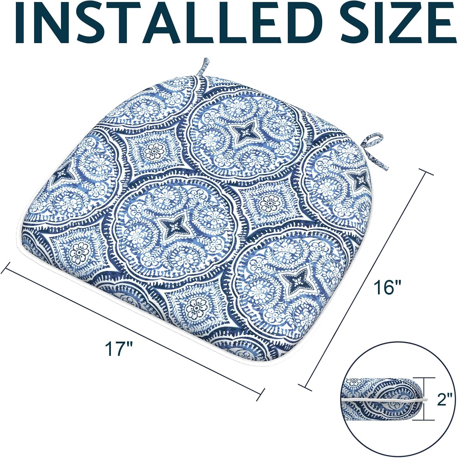 Indoor/Outdoor Chair Cushions 16x17 Inch, Patio Chair Cushions with Ties, All Weather Seat Cushions for Patio Furniture Home Garden Chair Use, Set of 4,Medallion Blue