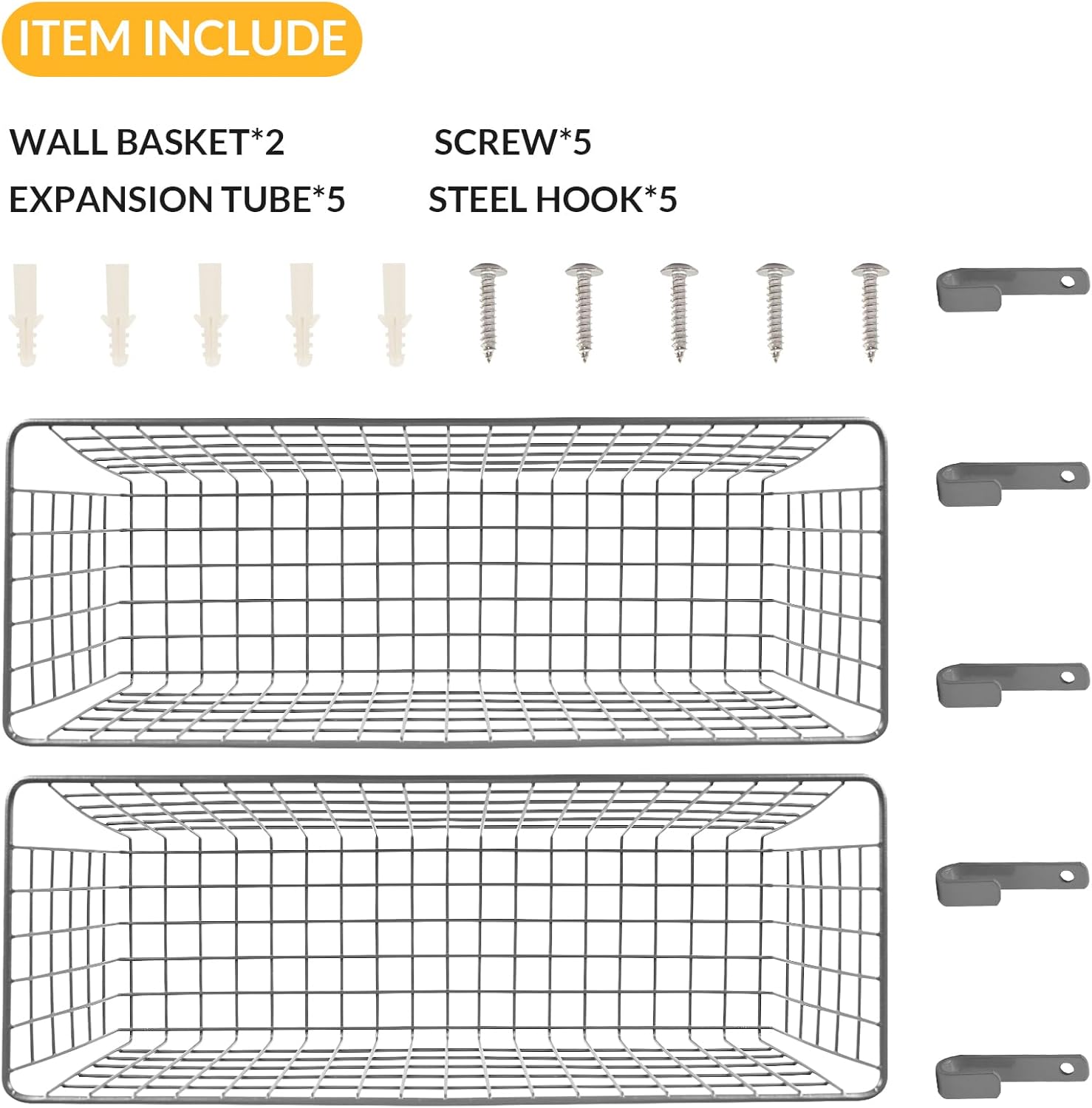 - Easy Installation: Includes 2 hanging baskets, complete with mounting hardware set (5 steel hooks + 5 expansion tubes + 5 screws). Simply mount the hooks to the wall using the included expansion tubes and screws, then hang the basket - you're ready to go! If you prefer not to hang it on the wall, you can also place it wherever you want. It's a versatile and convenient choice.