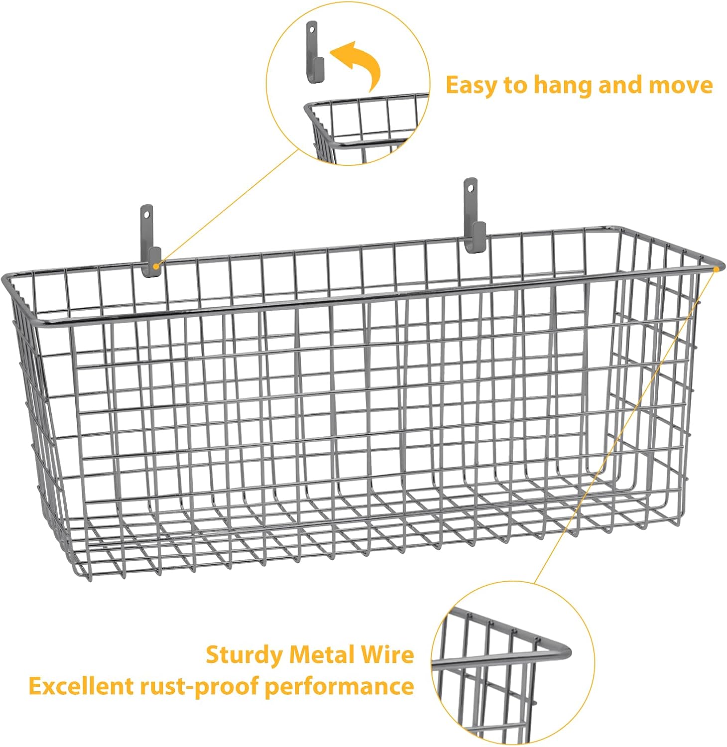 - Sturdy Metal Wire Baskets: These metal wall baskets are made of solid metal wire with anti-rust coating, sturdy and durable for long lasting. The wire baskets for organizing open design allows you to see the items inside the basket, which makes it easy to find the item you need. And easy to clean, just wipe clean with a soft damp cloth and dry towel.
