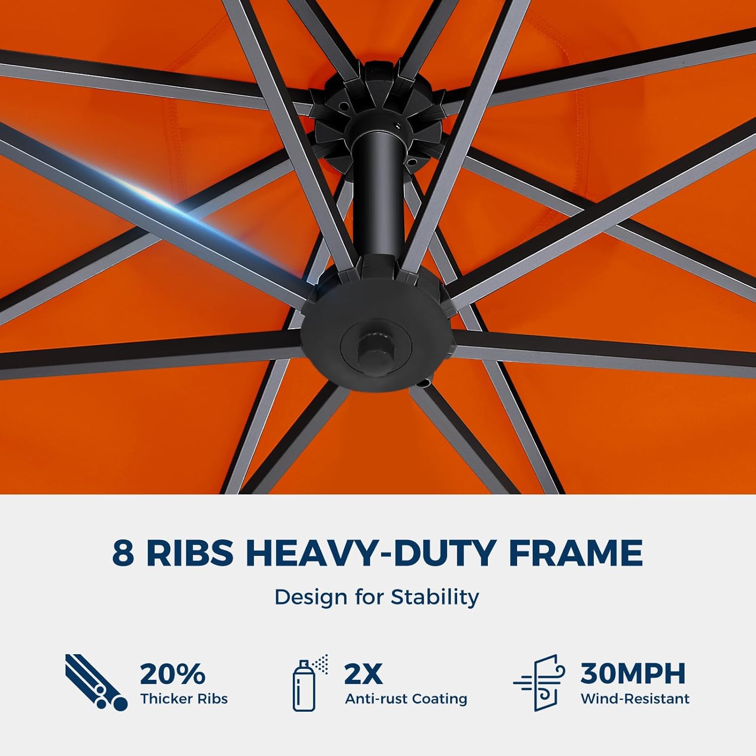 HOMSHADE 10ft Solar Lights Offset Cantilever Patio Umbrella - with Light and Base, LED Lighted Offset Hanging Patio Outdoor Market Umbrella UPF50+ UV Protection with Easy Tilt and Crank (Orange)