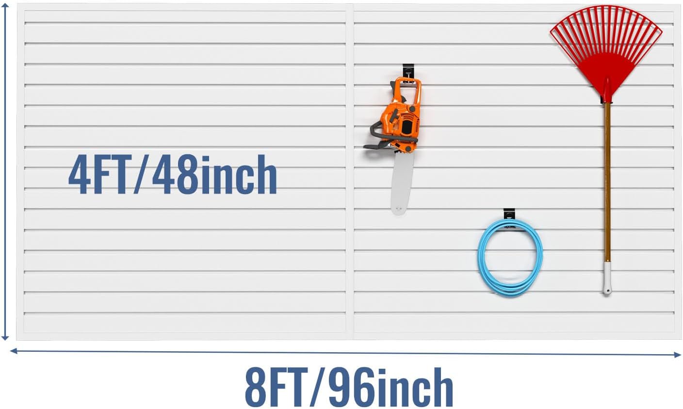 Slatwall Panel Garage Organizer PVC Slatwall Heavy Duty Wall Mounted Rack, Interlocking Slat Wall Panels for Tool Organization Peg Board(White 4 x 8 ft)