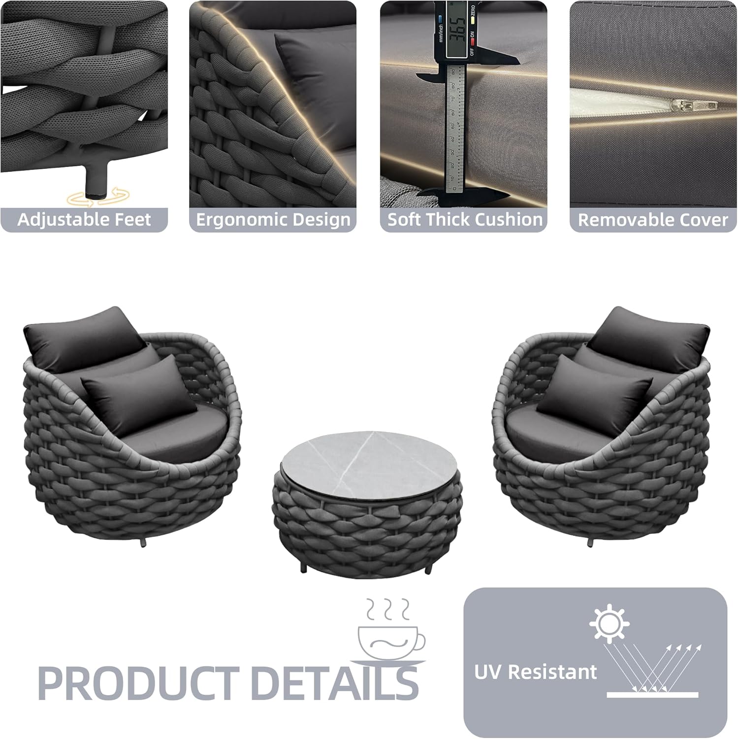 - Sturdy & Durable - Quick drying woven rope outdoor furniture with high quality aluminum alloy,no rust,no deformation,hand woven textilene rope are strong enough to withstand all weather variations.Outdoor patio furniture set cushions balance well with sturdy frame.