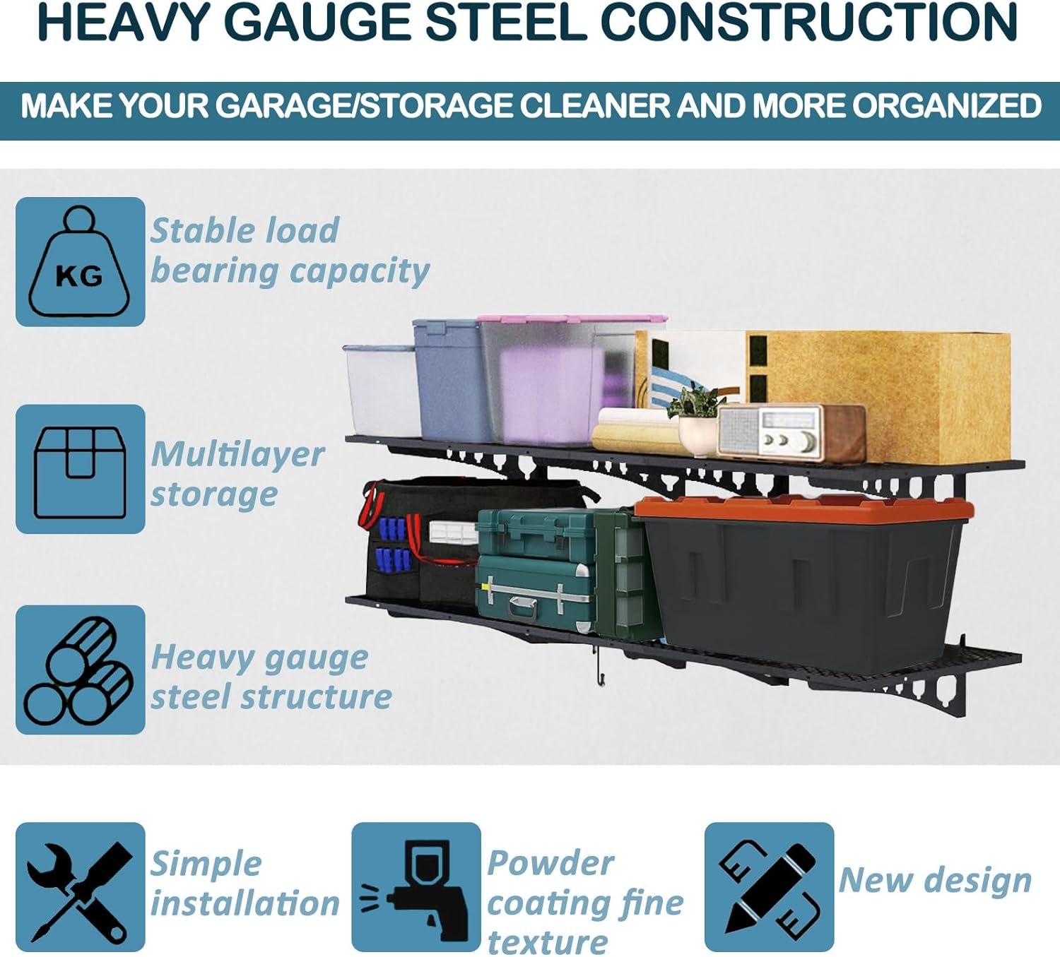 - EASY INSTALLATION: This garage shelves is equipped with accessories needed for installation, one person can easily install it after arrival, if any accessories are missing, you can contact us in time!