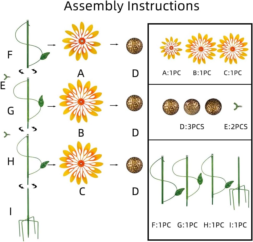 - All Weather Resistance:The sunflower wind spinner has long-lasting waterproof and rust resistant coating, which can be used in various weather conditions