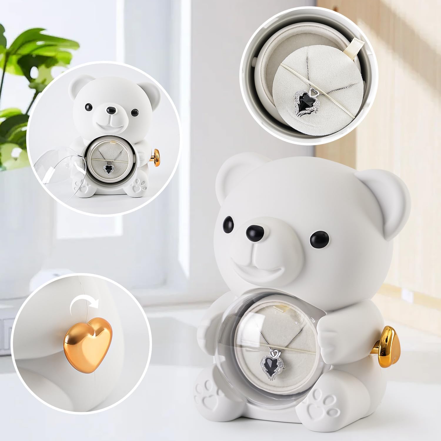- π Unique & Cute Bear Design: The adorable teddy bear holds a stunning preserved rose inside a transparent plastic cover. Rotate the golden heart-shaped knob to reveal a hidden jewelry box behind the rose, adding an element of surprise for your beloved one!