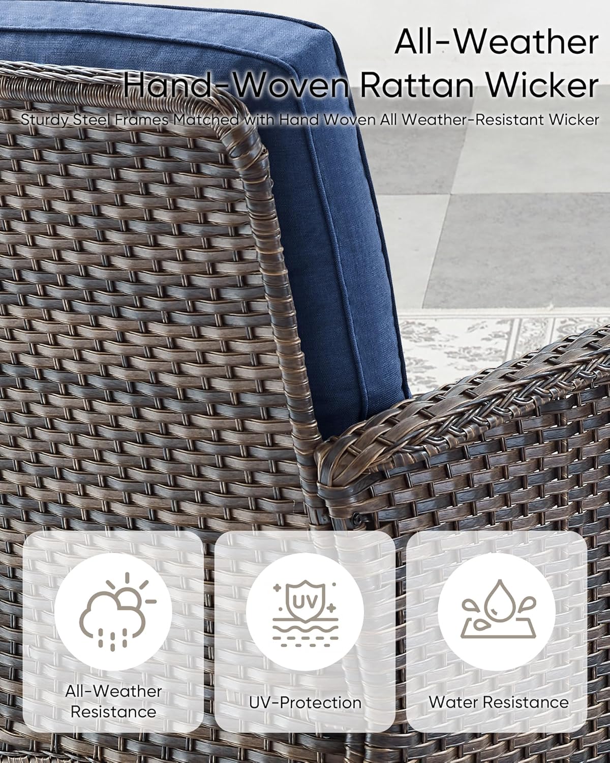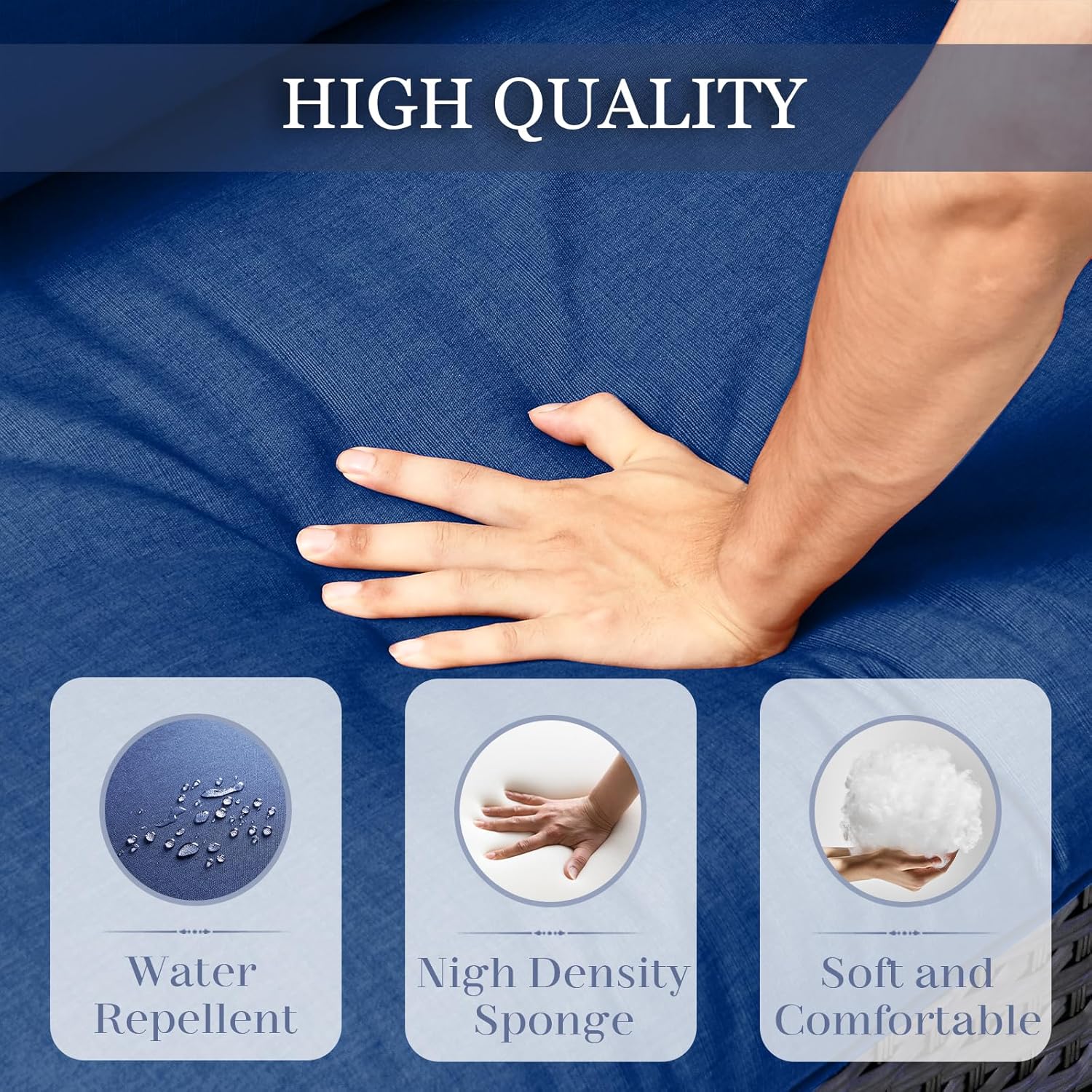 - Thick Cushions for Lasting Comfort and Support: These 4-inch thick cushions are filled with high-density resilient sponge, providing excellent support and long-lasting comfort. The wide seating design ensures plenty of space to relax, while the cushions retain their shape and bounce back after each use, never compressing. Perfect for outdoor lounging, these cushions offer both softness and durability, giving you a superior seating experience for years to come.