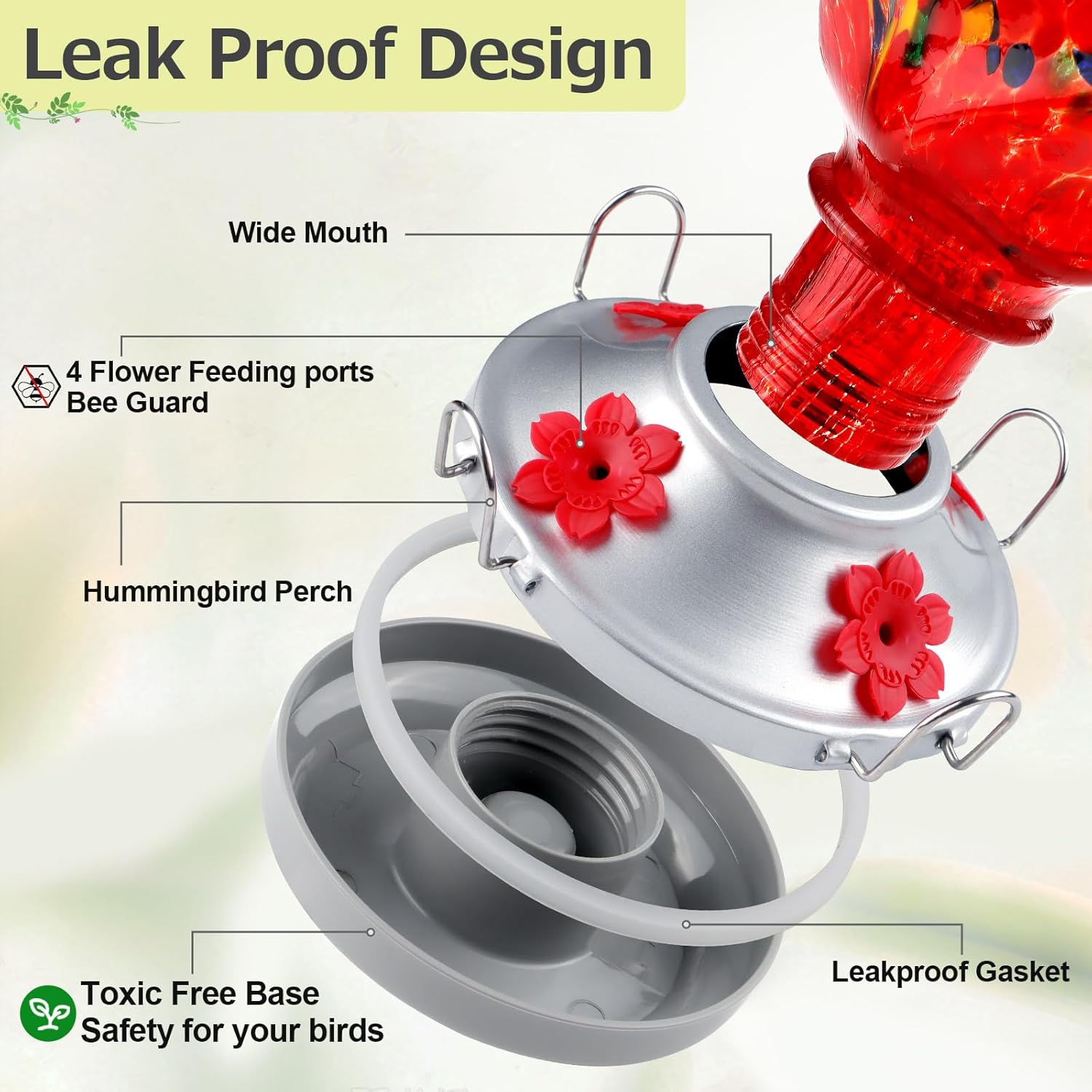 - Leakproof Function: Built-in durable gasket, unique design makes base connection proper and seamless, even when the feeder is jostled by wind or birds landing on it