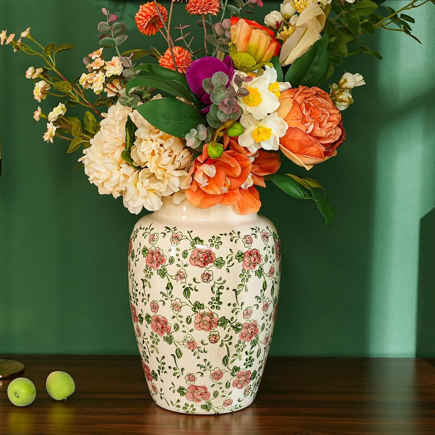 - Unique Design: Pretty vase with gentle colors, lovely vines and artistic flowers accent the cream background. Beautiful design and the crackled finish adds to the vintage look.