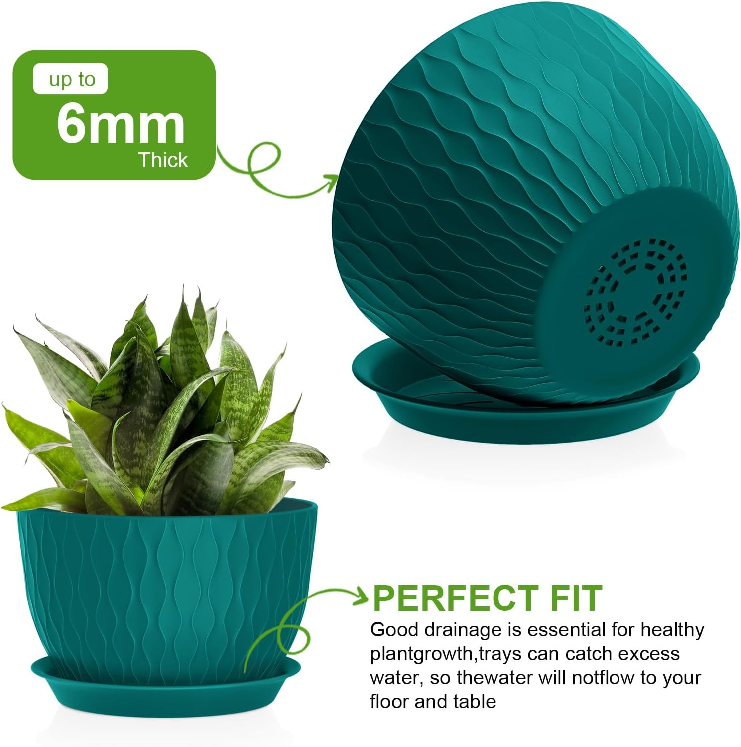 - 【Material】Compared to other flimsy plastic pots, our plant pots are made of super thick sturdy and environmental polypropylene material. It’s lightweight, durable, and will never be deformed or broken.