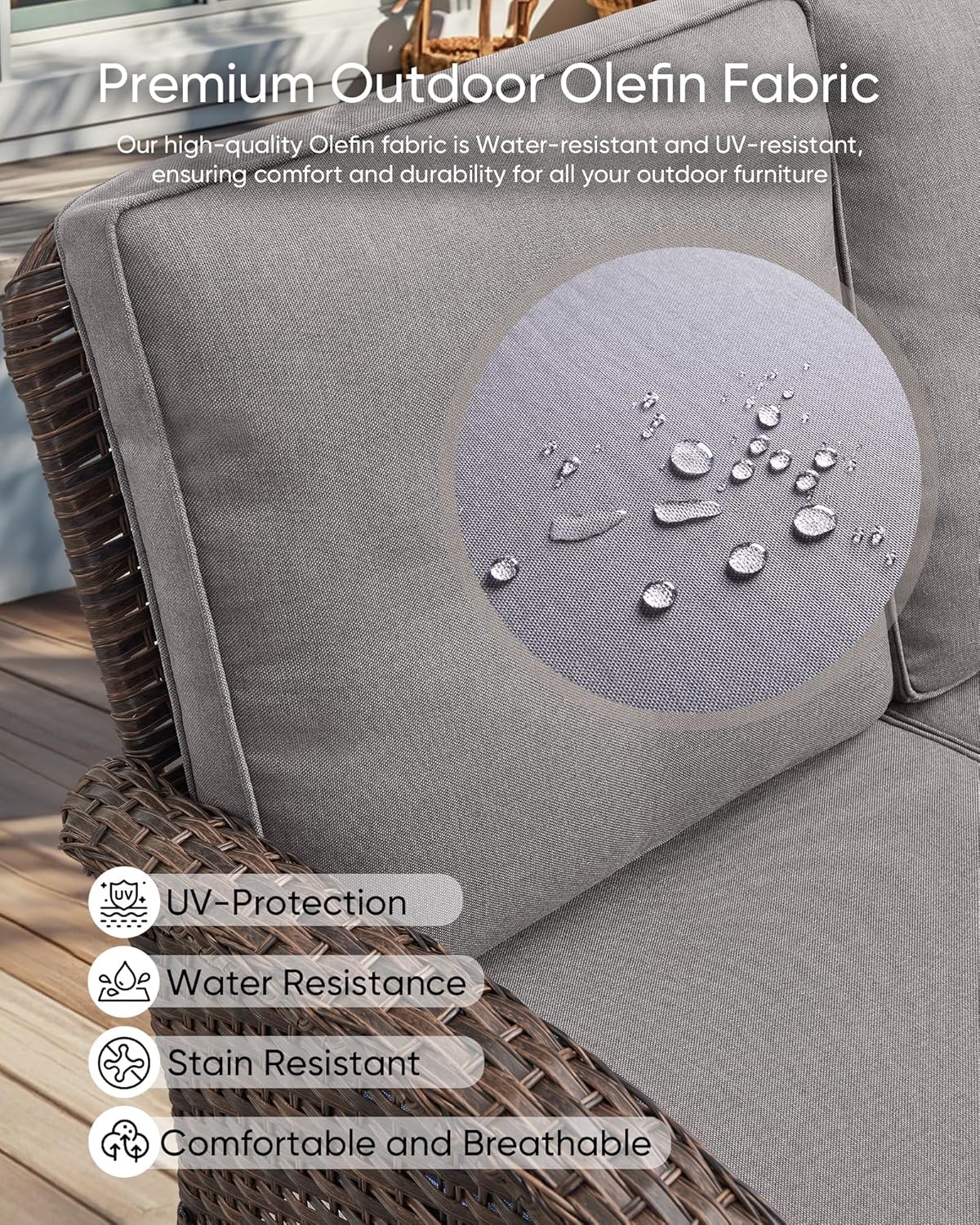 - Durable and Sturdy:Crafted with a powder-coated steel frame, these weather-resistant UV protection pieces are wrapped in hand-woven PE wicker to make this outdoor furniture set durable and sturdy.
