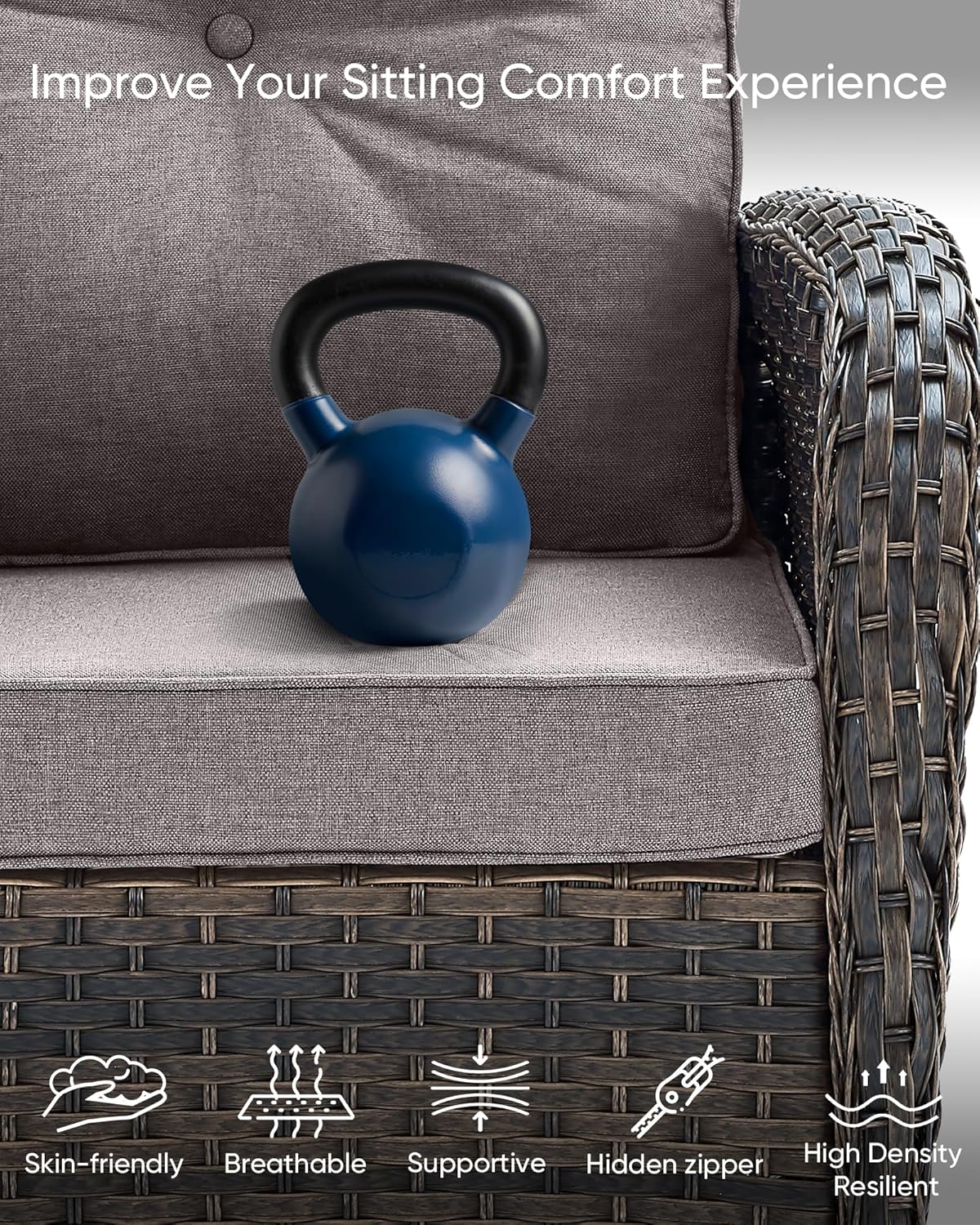 - Ergonomic Design:Added more comfortable support with the ergonomic high backrest and wide armrests design.Deep and wide seats with 4-inch thick sponge-padded cushions.Offers good resilience, not easy to deform or slide,for relaxing lumbar and added comfort and coziness.