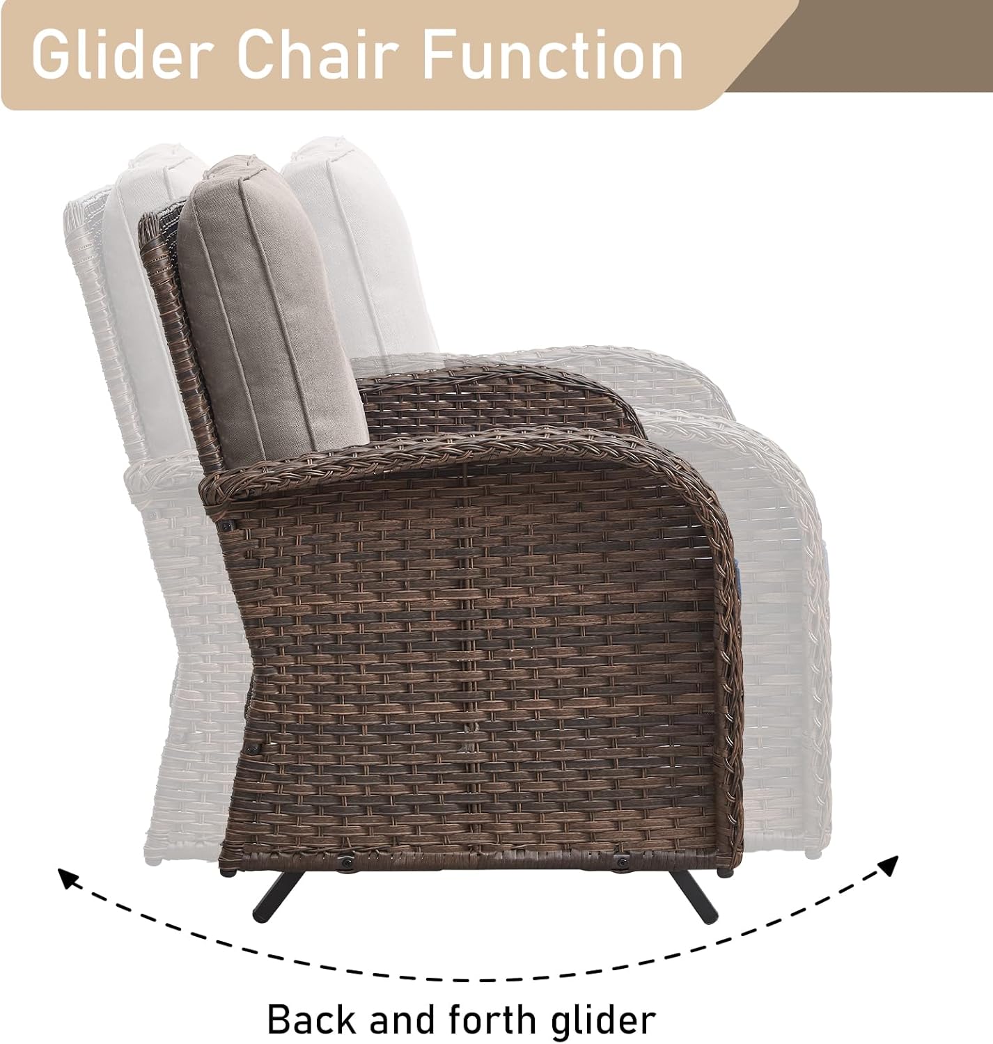 - Swivel Rocking Chairs:Resting on chairs with sturdy round metal base allows to glide gently and swivel 360Β° for relaxing, with seat and back cushions contribute to comfortable support, making the outdoor set a perfect addition to transform your patio.