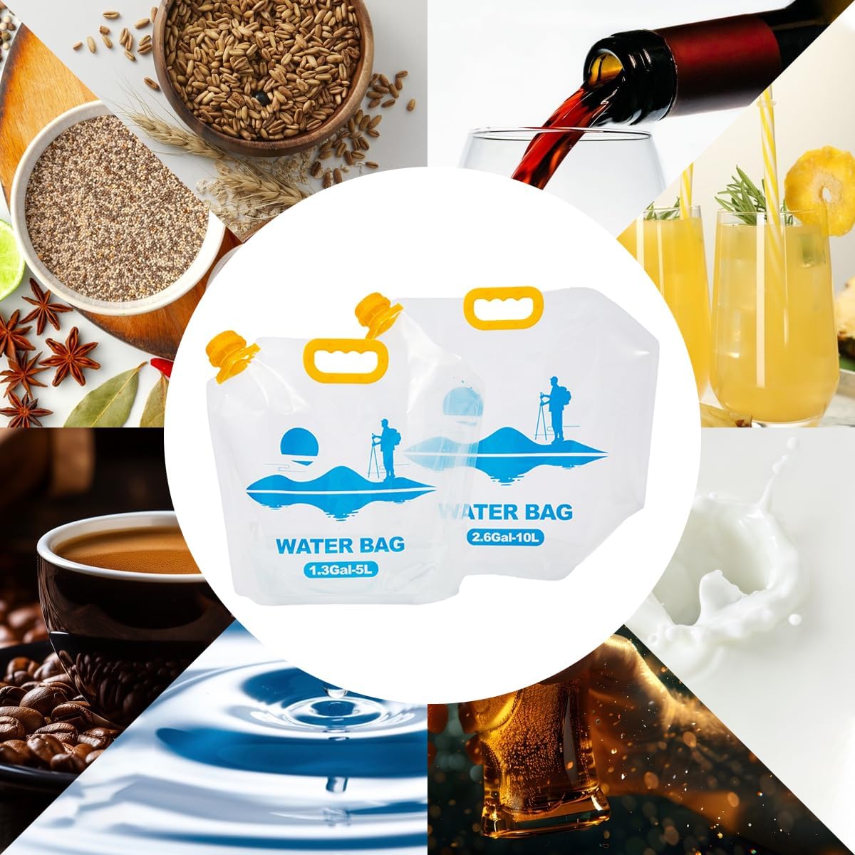 - Storability:Not only water, but also wine, milk, juice, Even dry foods such as corn, soybeans, flour, coffee beans, rice, or spices, sugar, salt, and more.