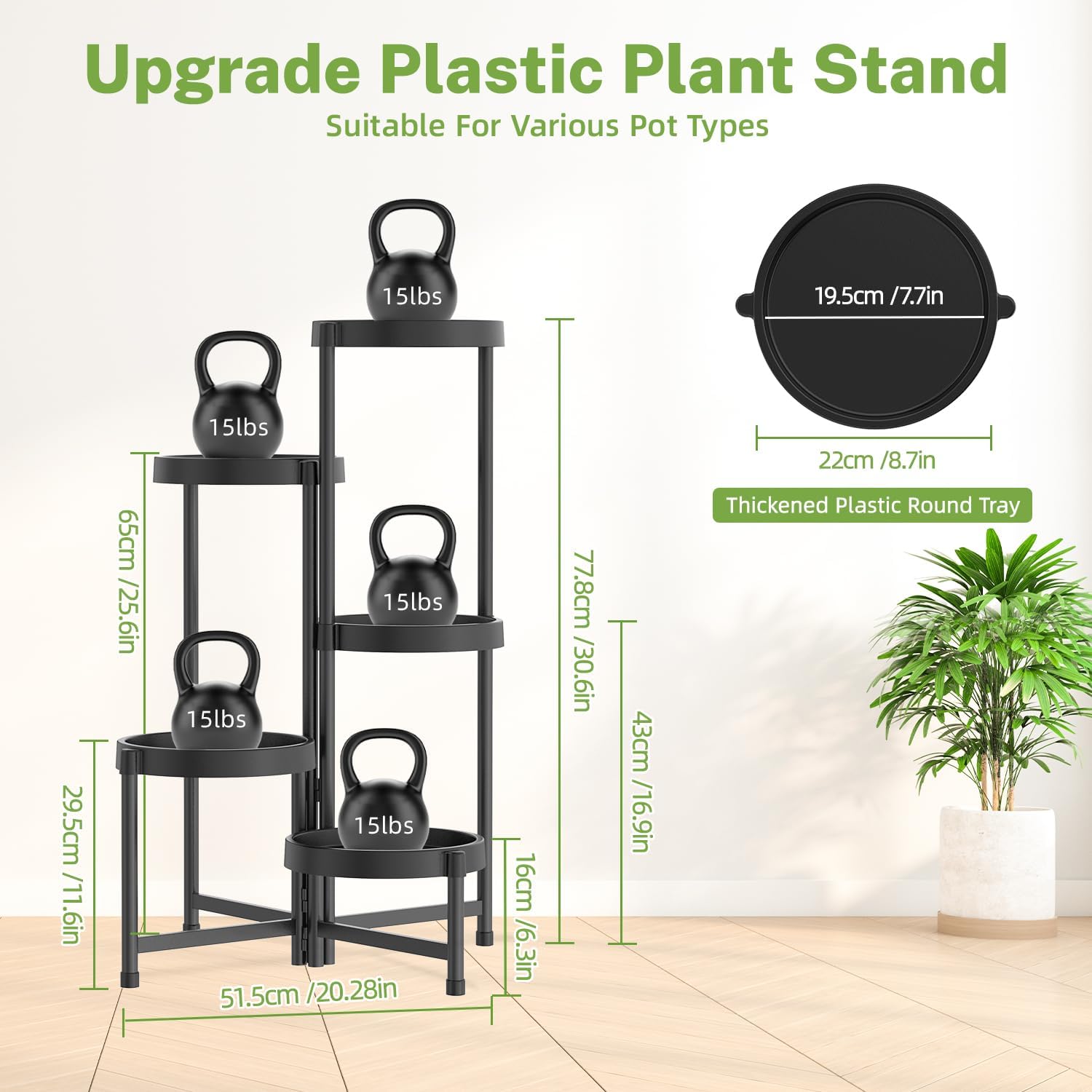 - 5 Premium Waterproof Trays: The trays of corner plant stand are made of waterproof and thickened plastic with long - lasting quality, which is ideal for various indoor and outdoor scenes like balcony, patio, porch and garden, creating a cozy green oasis.