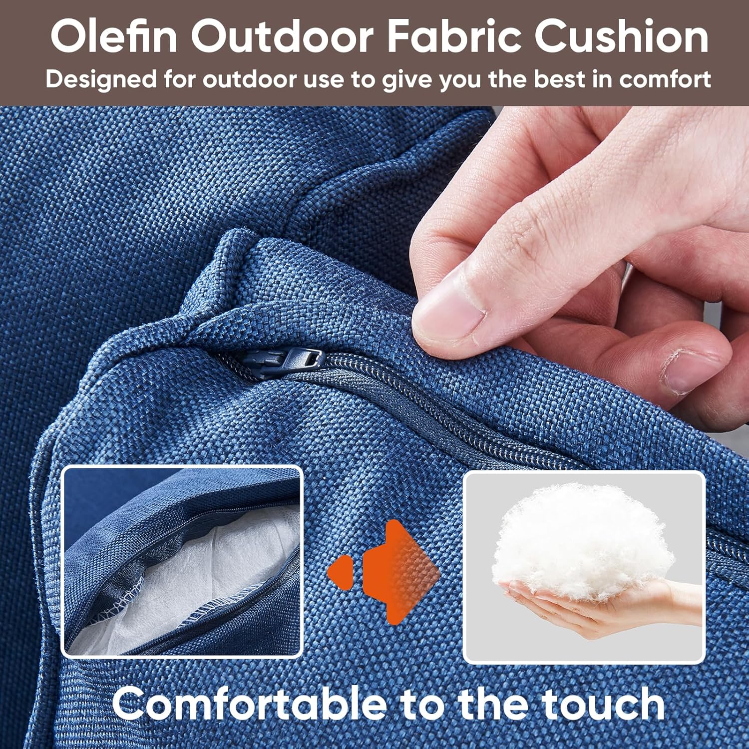 - Comfort Thick Cushions:Our cushions are made of high-quality olefin fabrics that provide excellent UV protection and water repellent function,Filled with a high-density 4" sponge to stay fluffy and non-deformation,Provide soft and comfortable seating experience, removable cover design is easy to clean.
