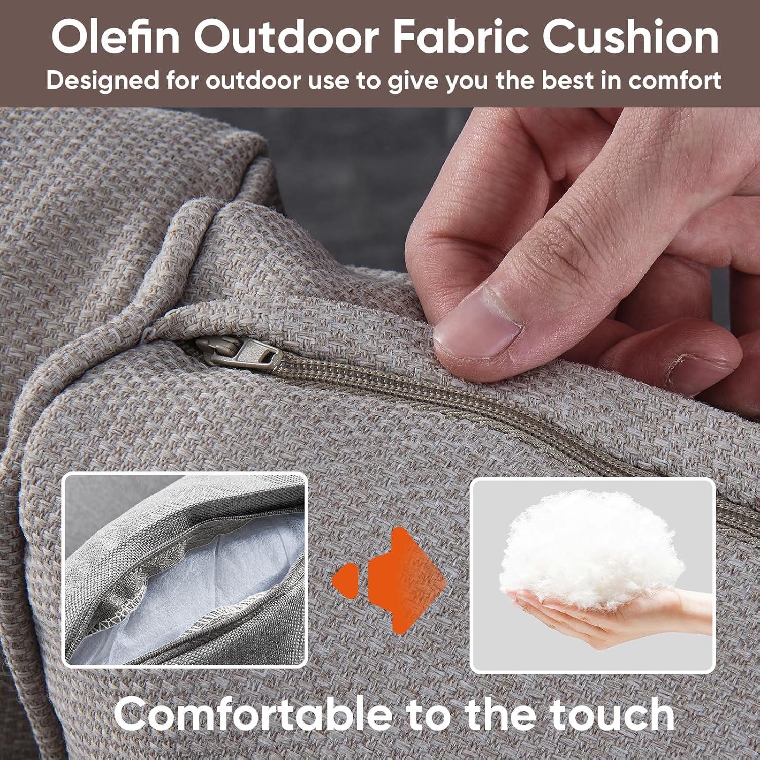 - Comfort Thick Cushions:Our cushions are made of high-quality olefin fabrics that provide excellent UV protection and water repellent function,Filled with a high-density 4" sponge to stay fluffy and non-deformation,Provide soft and comfortable seating experience, removable cover design is easy to clean.