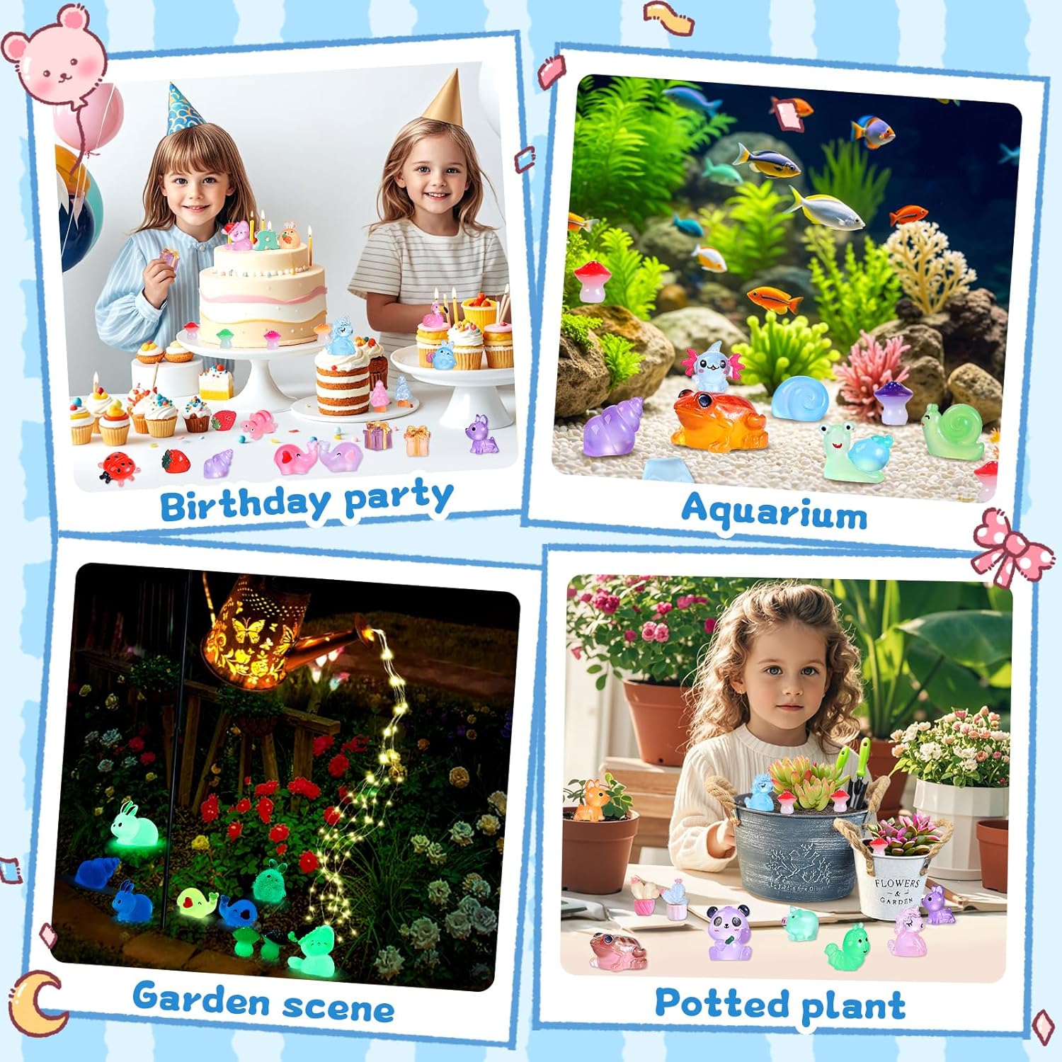 - Multiple scenarios: Small resin animals figures can be used as home and kitchen decorations, fish tanks, birthday decorations, DIY handicraft sets, suitable for various festivals or occasions such as Valentine's Day, Easter eggs, Christmas, birthdays, plant gardens potted, backpacks, tabletops, and more.