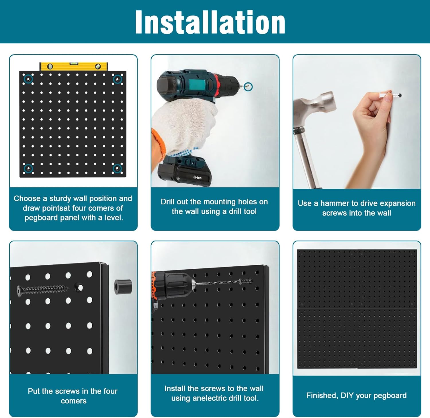 - 2.[Package Content] The product comes as a 4-pack 12βX12" pegboard and includes all the essential accessories for installation