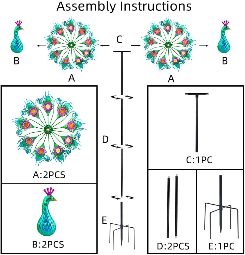- Outdoor Wind Spinner:This windmill adopts vivid peacock design that spins when the breeze blows, adding color and vitality to your garden, patio, lawn