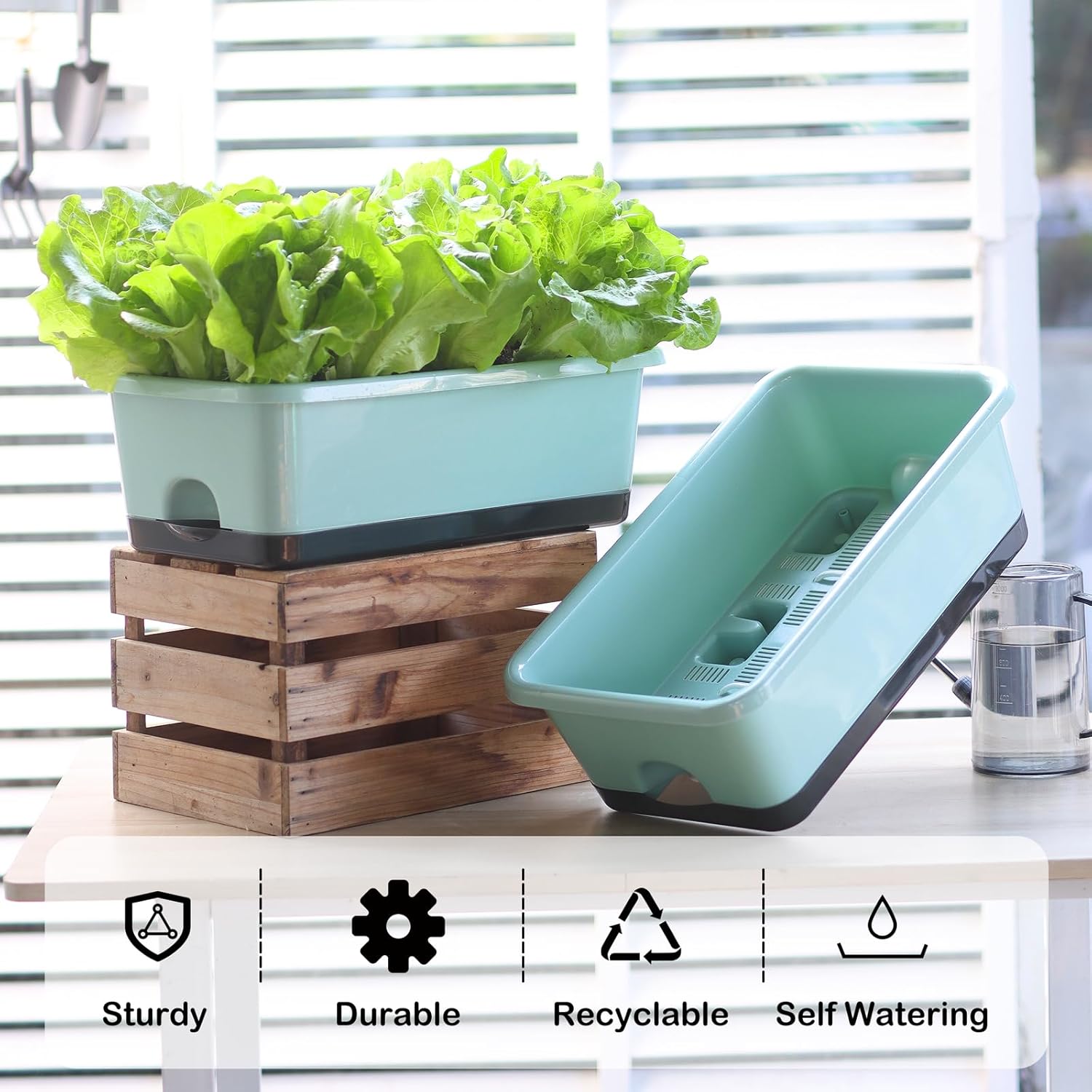 - 【Premium & Durable】The planter pots are made of high quality PP material and has been thickened to bear up to 300KG (660LB). This window box planter is sturdy, wear-resistant and durable. It can be exposed to light, wind, and sunlight for long periods of time, with a lifespan of decades. It is an excellent planter box for both indoor and outdoor.