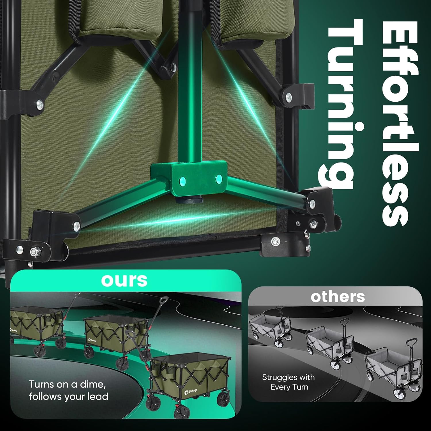- ใ๐๐จ ๐๐ง๐ฒ๐ฐ๐ก๐๐ซ๐ ๐๐ก๐๐๐ฅ๐ฌใ: Featuring ๐" ๐๐ข๐๐ฆ๐๐ญ๐๐ซ ๐ฐ๐ก๐๐๐ฅ๐ฌ ๐๐ง๐ ๐" ๐ฐ๐ข๐๐ ๐ญ๐ซ๐๐๐๐ฌ, Sekey wagon glides effortlessly over sand and rough terrain. The ๐๐ง๐ญ๐ข-๐ฌ๐ฅ๐ข๐ฉ ๐ซ๐ฎ๐๐๐๐ซ strip enhances traction and reduces vibrations, while the ๐๐ฎ๐ข๐ฅ๐ญ-๐ข๐ง ๐๐ซ๐๐ค๐๐ฌ provide reliable stopping power wherever you go.