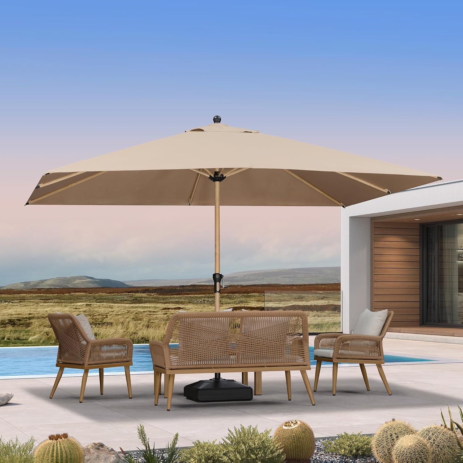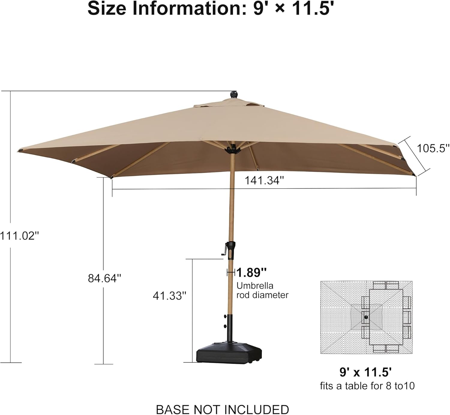 PURPLE LEAF 9' x 11.5' Patio Umbrella Outdoor Table Umbrella Rectangular Aluminum Market Umbrella with 8 Sturdy Ribs & Crank Outdoor Umbrellas for Garden Deck Patio, Taupe