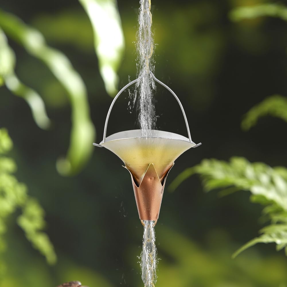 - Warm Tips: Each cup of the rain chain is designed with a wide upper and a lower narrow, effectively capturing most of the rainwater, but some splashes will occur. If you encounter other problems, please inform us through Amazon, and we will provide you with a solution to the problem within 24 hours