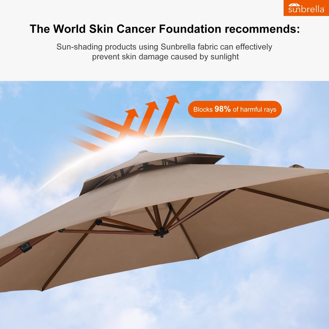 PURPLE LEAF 11ft Patio Umbrella Cantilever Umbrellas Outdoor Round Wood Umbrella Offset Umbrellas Heavy Duty Sun for Garden Deck Pool, Deep Beige