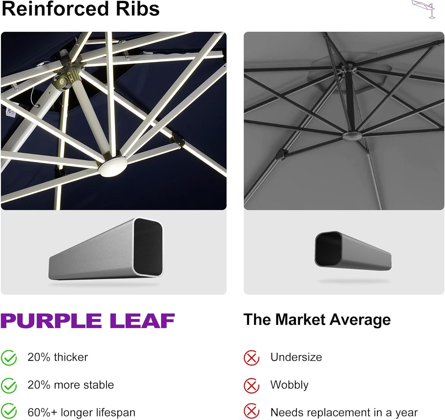 PURPLE LEAF 9' X 12' Solar Powered LED Patio Large Umbrella Offset Double Top Hanging Umbrella Outdoor Market Umbrella for Garden, Spectrum Indigo