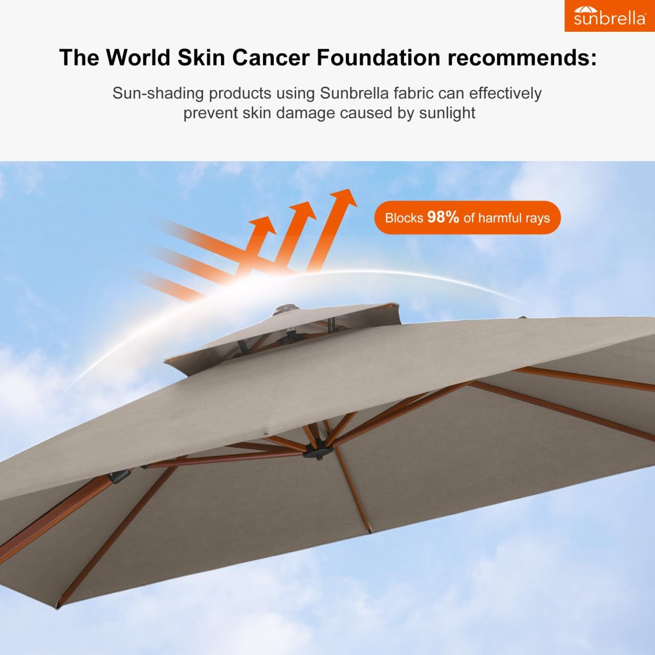 PURPLE LEAF 10' X 13' Patio Large Cantilever Umbrella Outdoor Square Wood Umbrellas Offset Umbrella Heavy Duty Sun Umbrellas for Garden Deck Pool, Heather Taupe