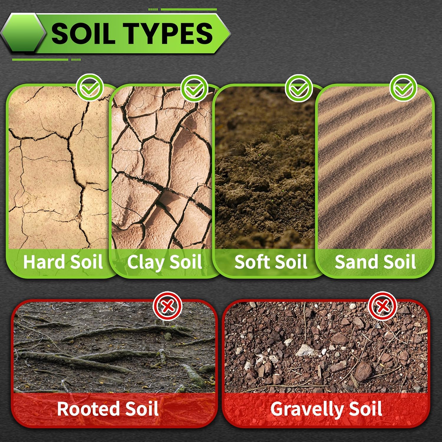 - 【Suitable Soil Types】Our auger drill bit for planting works best in sandy, loamy, and relatively soft clay soils. It performs exceptionally well in these soil types, ensuring efficient and precise drilling. However, it is not recommended for use in soils with many rocks or dense root systems, as these conditions can impede its performance.
