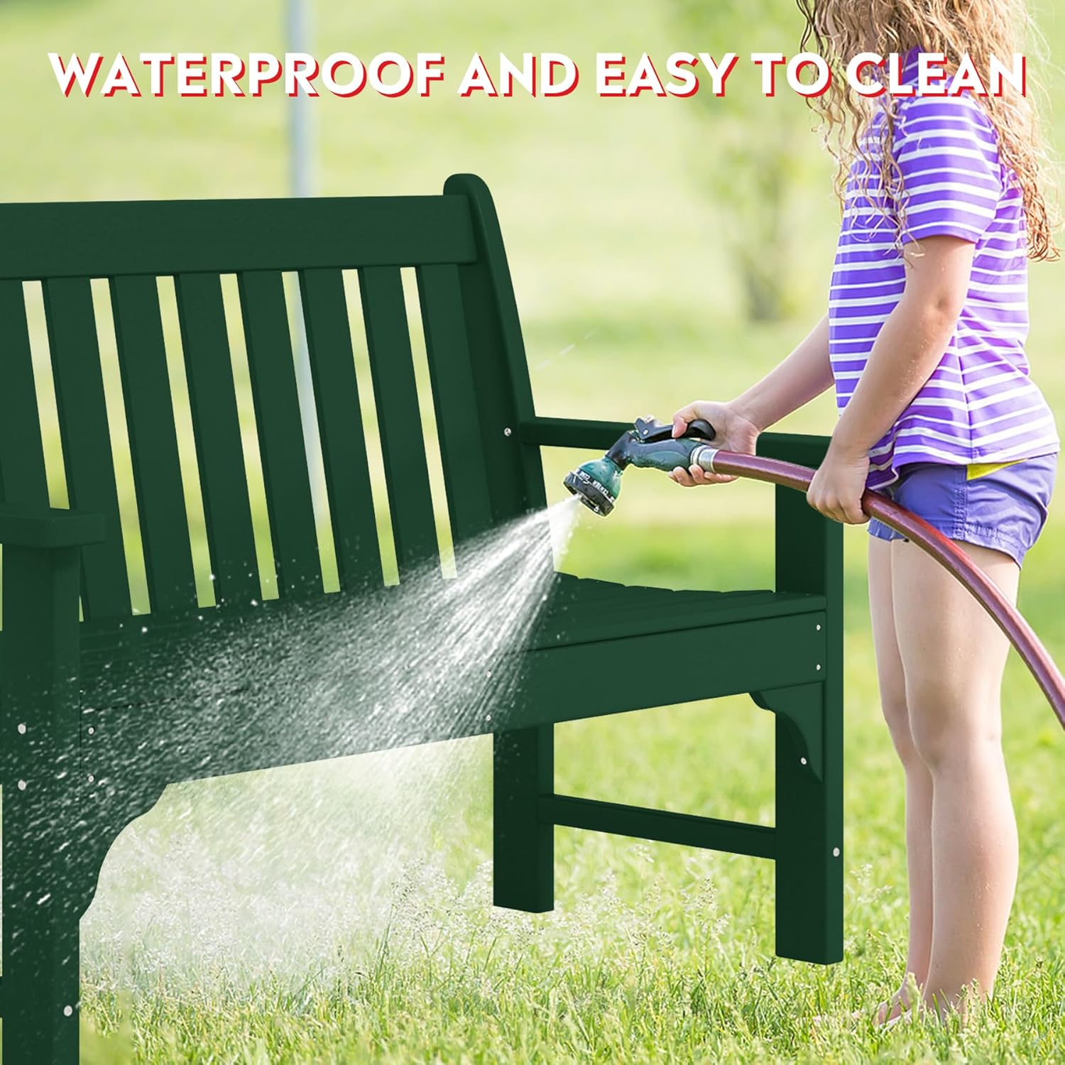 Garden Bench, Farmhouse Park Front Porch for Entryway Bench Outdoor Seating Low Bench Patio Bench Outside/Indoor, Dark Green