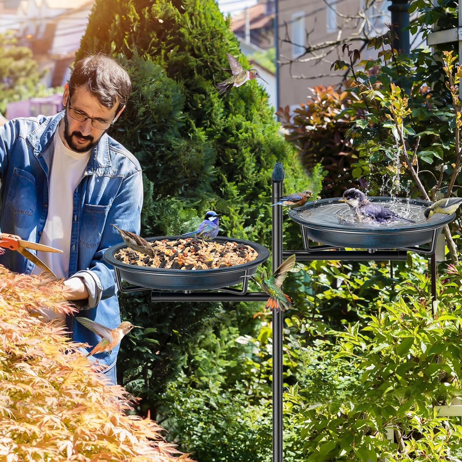 - 【2-in-1 Bird Bathtub & Feeder】After the upgrade, an additional basin has been added, which can meet the feeding and bathing needs of birds at the same time, making it very suitable for outdoor gardens. And it is very easy to clean and fill. Keeping it clean is very important for the health of birds.
