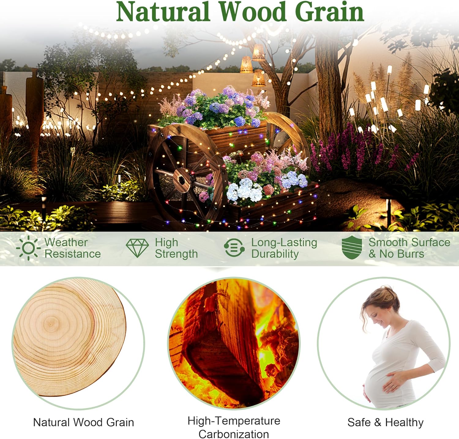 - 【Durable】: Made of high-quality cedar and burned-treated, this seeder cart has high weather resistance. Natural and sustainable materials perfectly match the style of your garden or courtyard.