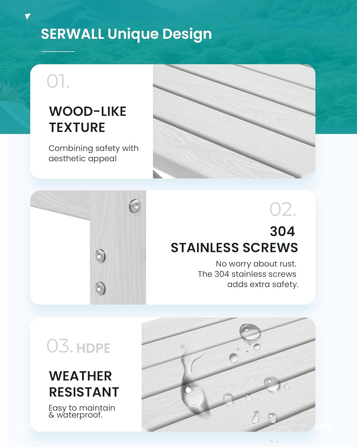 - Wood-like Texture - Based on the love of nature, we adopted a faux wood grain design, which not only maintains the original rustic natural elements of Adirondack but also avoids damage to the forest.