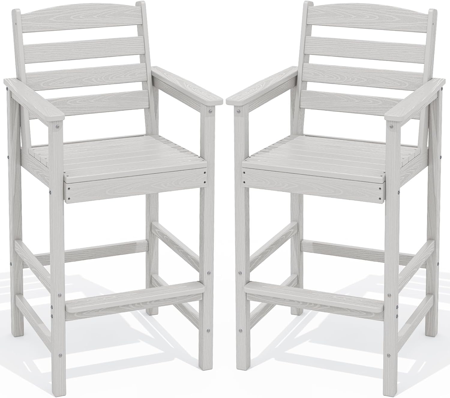 SERWALL Tall Adirondack Chairs Set of 2, Oversize Balcony Adirondack Chairs Set, Outdoor Bar Height Barstools Widened Chair Set for Bistro, Poolside, Garden, White