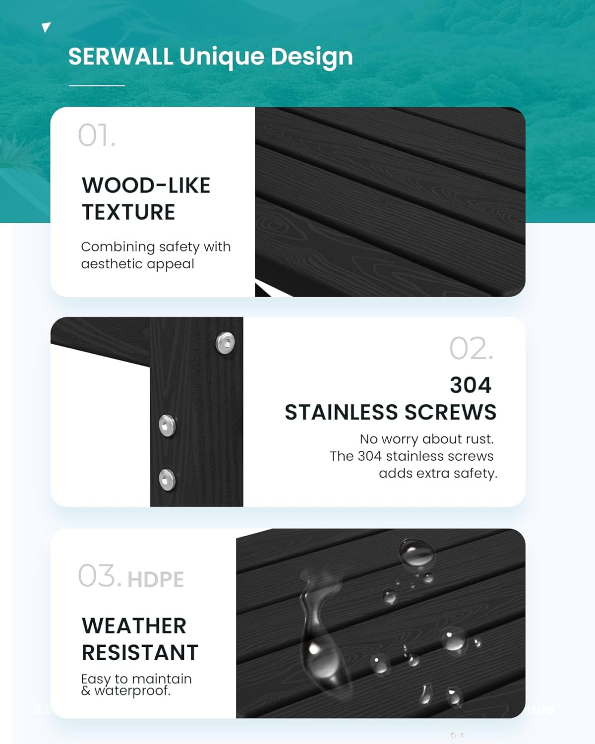 - Waterproof & Fast-drying β The slatted HDPE material is designed to shelter from rain and dry quickly, so you don't have to wait long after a storm to use it. Ideal outdoor furniture for poolside.