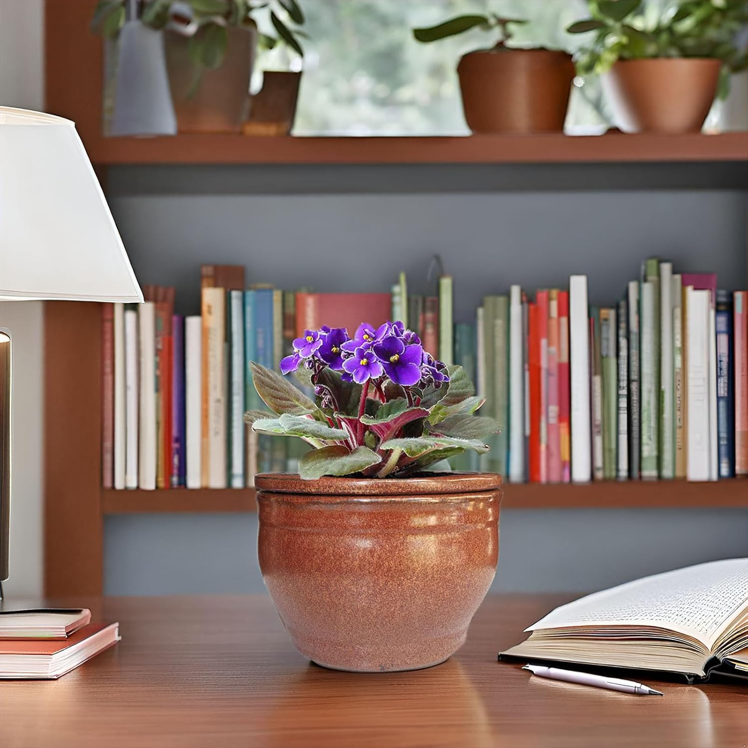 African Violet Pots Self Watering Round Ceramic Violet Pot (Copper, 6 inch)