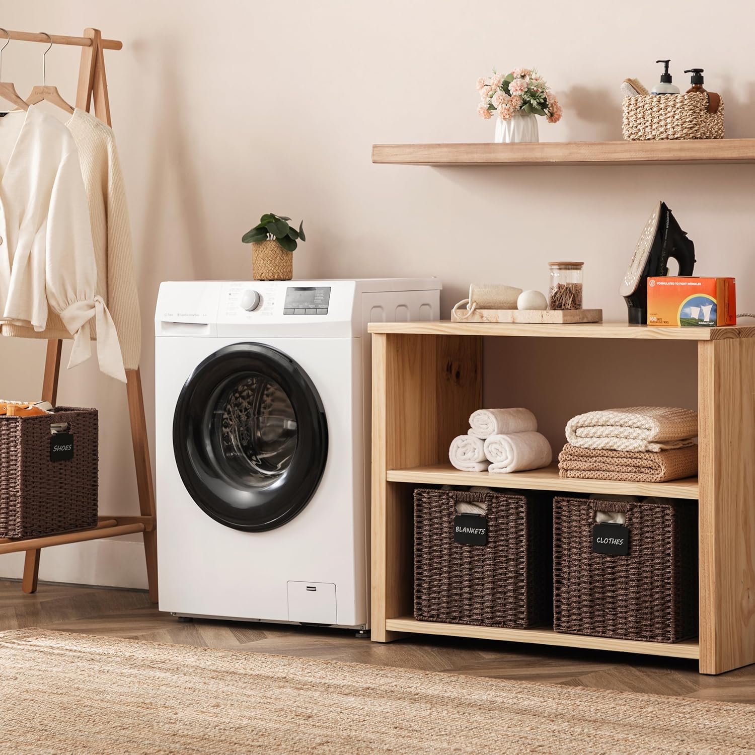UBBCARE 2 Pack Wicker Basket, 12×12 Storage Cubes with Label, Foldable Cube Storage Bin with Handle, Square Storage Basket for Shelves, Woven Paper Rope Basket for Organizing, Brown