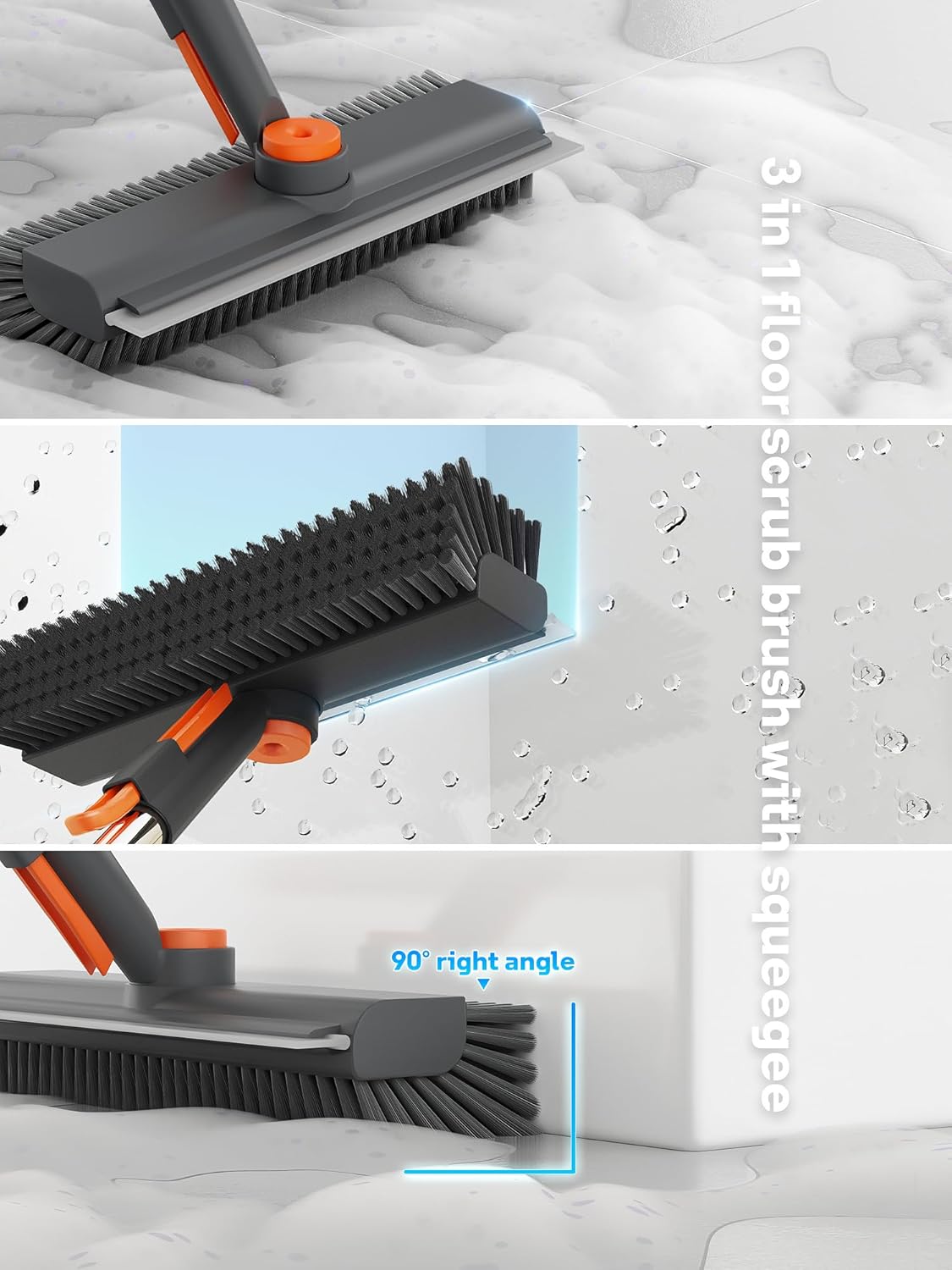 - ăMulti-Angle Adjustable Scrub Broomă: The brush head of our scrub brush with long handle can rotate(press the button) to multiple angles, giving you complete control over your cleaning. Whether youâre cleaning floors, walls, or corners, ensures you can tackle every spot comfortably and thoroughly