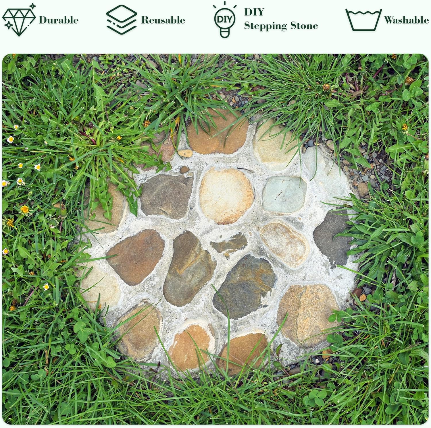 - Included Components : 3 pieces of stepping stone mold (10", 11.4", 12.6")