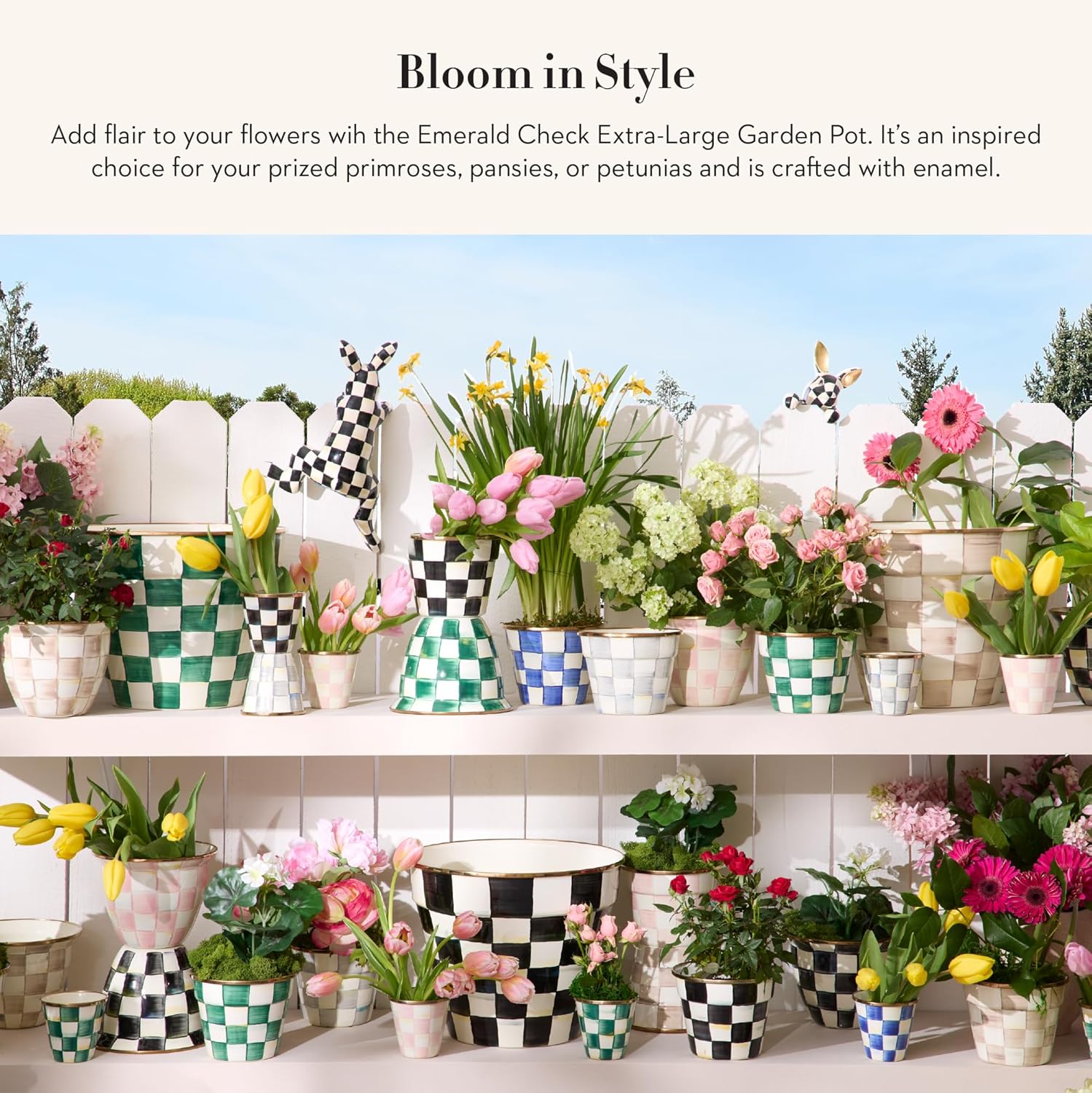 MACKENZIE-CHILDS Enamel Garden Pot, Decorative Pot for Plants, Outdoor Flowerpot Decor, Extra Large, Green-and-White Emerald Check
