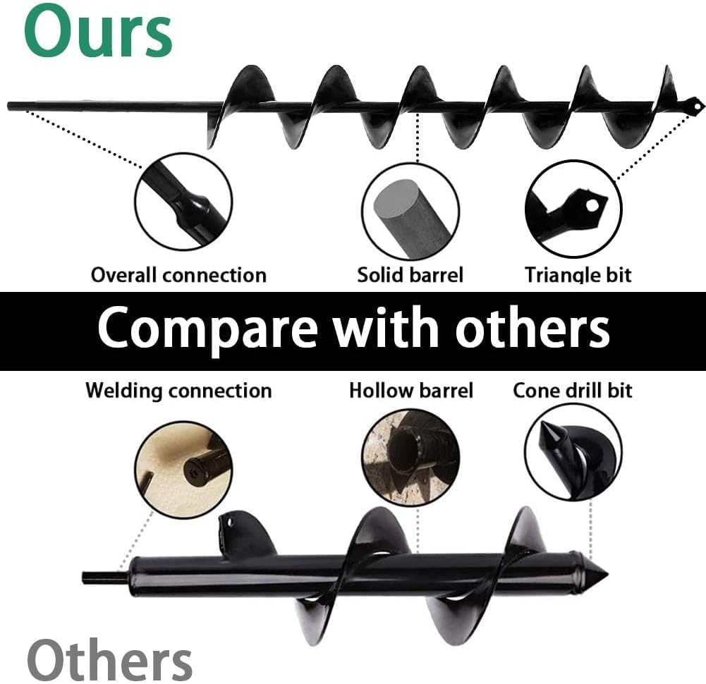 - 【Multi-purpose Tool】Our long auger drill bit for planting is a versatile tool designed for a wide range of applications. Perfect for planting shrubs and trees, it’s also ideal for installing larger planters, beach umbrellas, mailboxes, fences, and trellises. This multi-functional bit makes complex gardening and installation tasks easier and more efficient, making it a must-have for serious gardeners and DIY enthusiasts alike.
