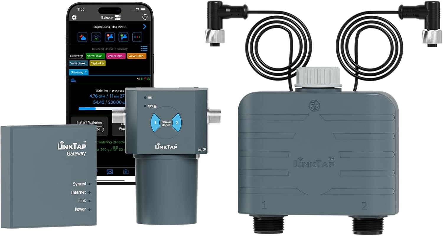 LinkTap T1 Smart 2-Zone Water Timer & Gateway, Built-in Flow Meters, Real-Time Fault Detection & Notification, Weather Adaptive, Better Range Than WiFi Hose Timer, IP66, Alexa, 2-Year Warranty