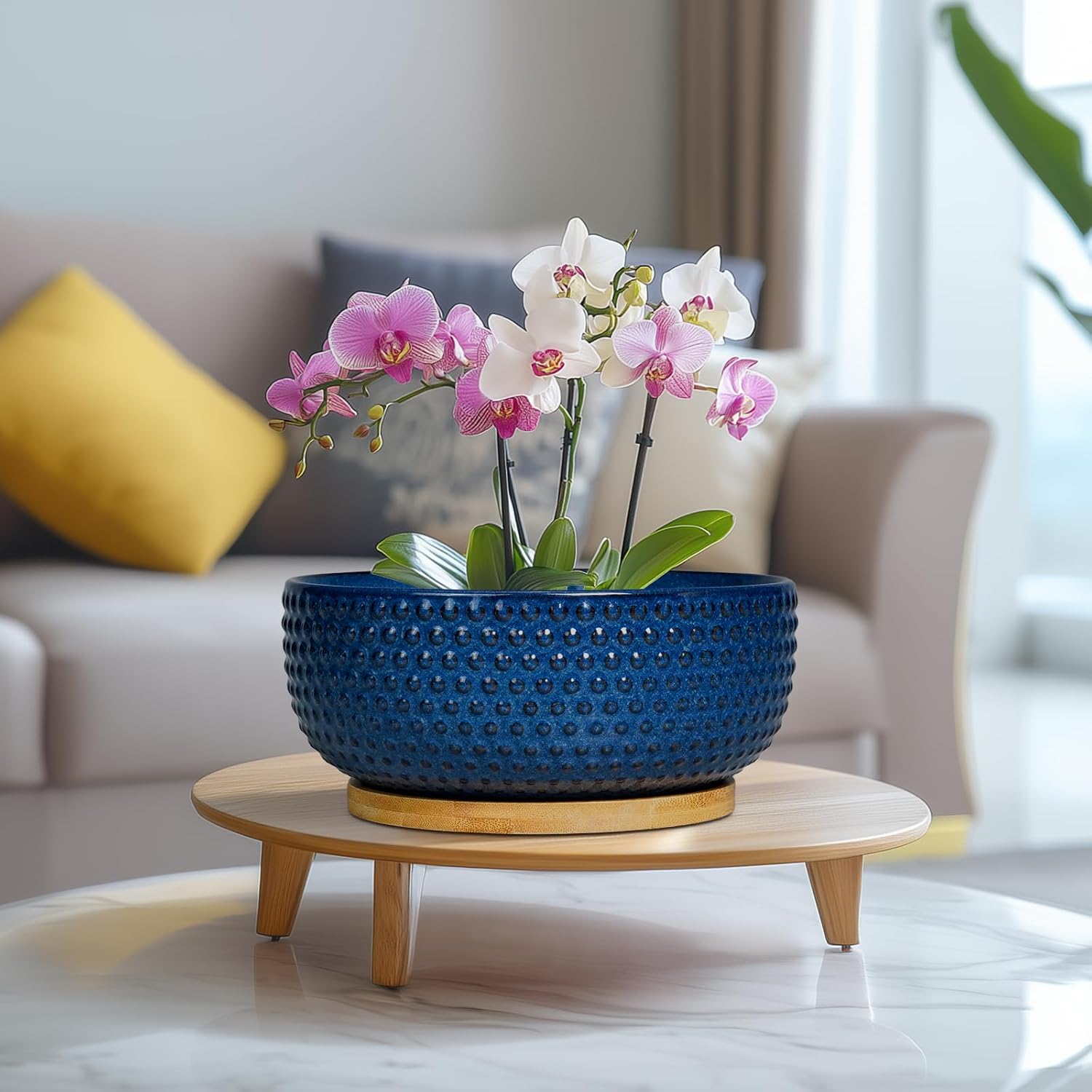 Bonsai Pots - 8 Inch Ceramic Pots for Succulent Plants & Bonsai Tree, Planter with Drainage Hole and Saucer, Modern Round Decorative Flower Planters, House Decor, Gifts for Women Man, Blue